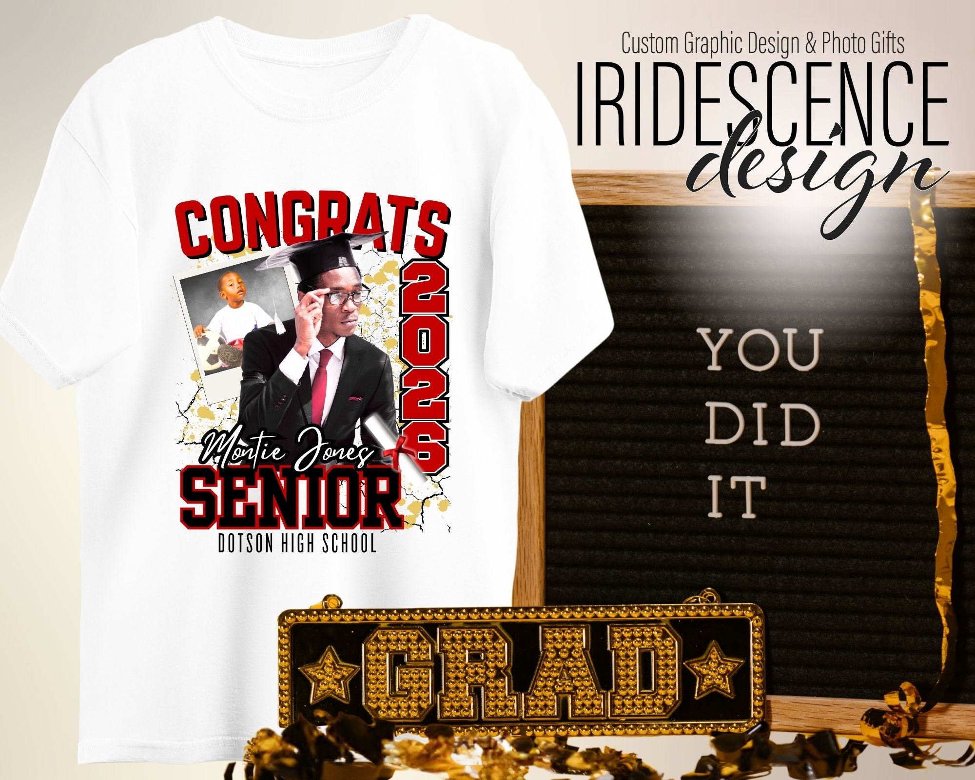 Custom T-Shirt: A comfortable, eye-catching tee featuring your senior’s photo, name, and "Class of 2026." Perfect for senior week events or family photos.