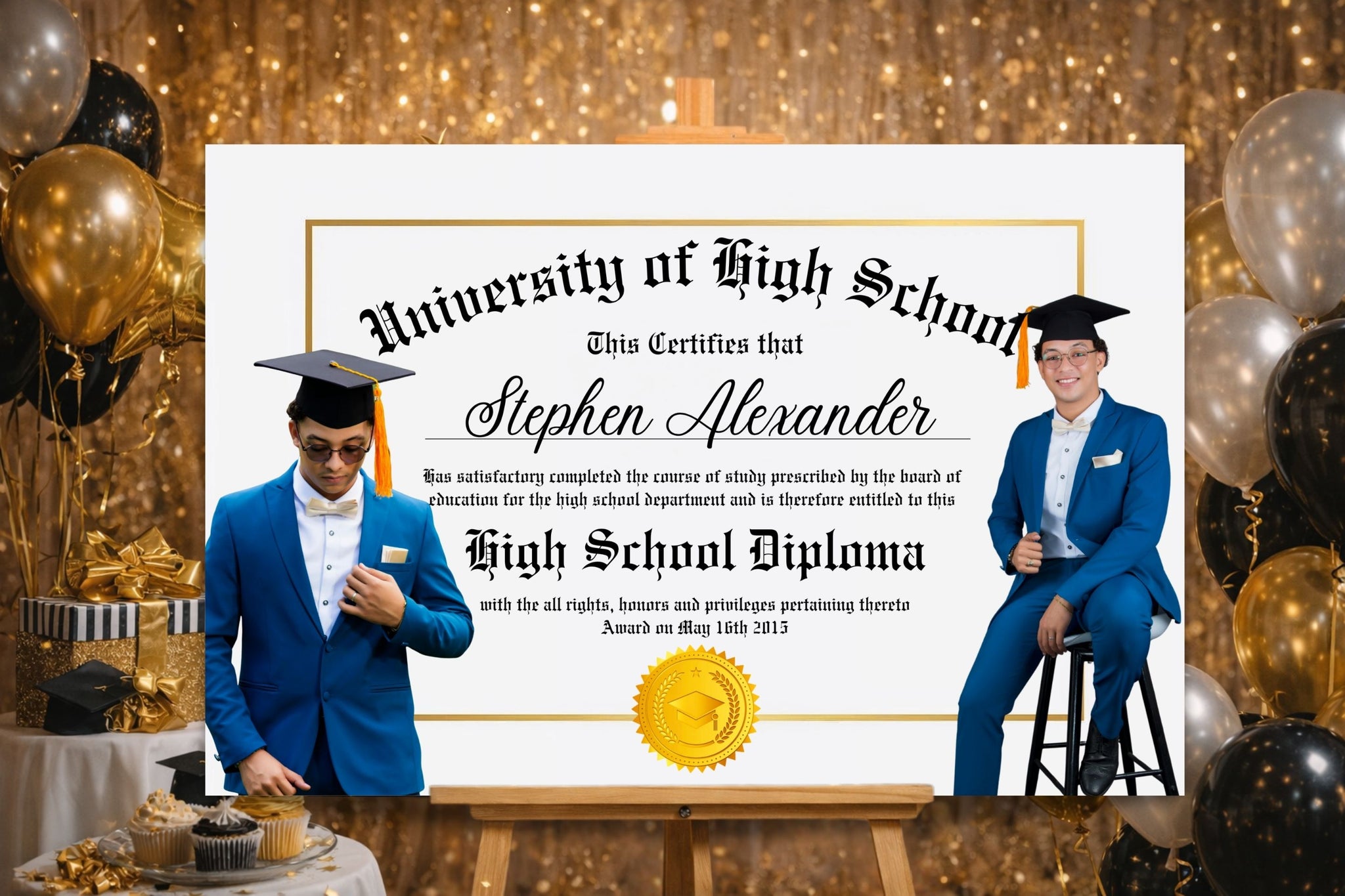Custom Diploma Graduation Poster with photos - Stiff Paperboard