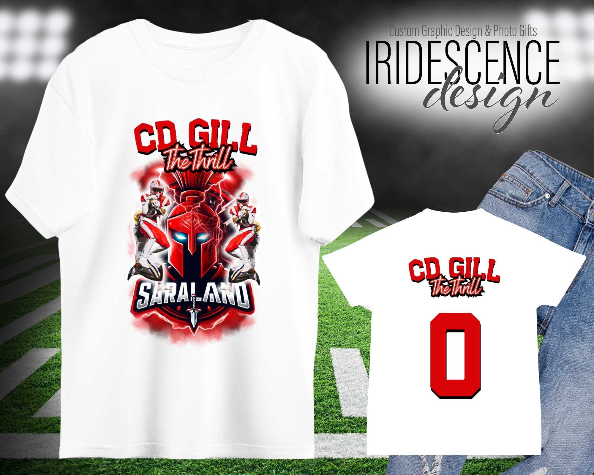 Football T-Shirt with photo and Player number - Front and Back - Customize with sport, fan name, team, mascot and name. Don't worry, the image doesn't fade, crack or peel. It is dyed into the fabric (you can't feel it on the shirt). The image is vibrant, full color,andwill appear as it is sent.